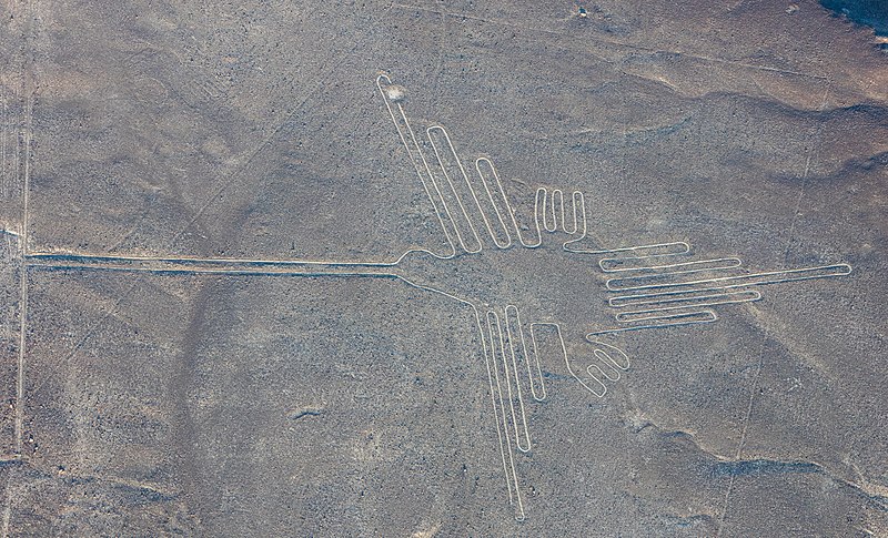 For the second, I debated doing the monkey, which is also a very well-known glyph. The difficulty with the monkey is the spiral in the tail. I didn’t think I would be able to replicate that with stair blocks very well, at least not without the stairs misbehaving at every turn! So I instead opted for the hummingbird. The hummingbird is also a well-known glyph and is twice as long as the spider. It has more straight lines, but the feathers on the wings and the tail are also closer together. I thought it would be an interesting set of challenges that differed from the spider, but would still work in Minecraft.