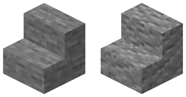 We also don’t have that many options for stairs in Minecraft. For ones that will match the colours of a Minecraft gravel block, but don’t look like they’re individual stones lined up nicely, our options are basically andesite or stone stairs. Andesite blended in better with the gravel, so I opted for those.